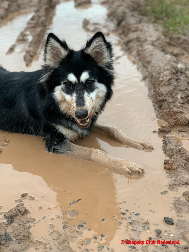 De vacht van de Shepsky is “zelfreinigend”. Hebben ze in de modder, in het zand of in de regen gespeeld; nadat de vacht weer droog is, valt (bijna) al het vuil er vanzelf weer uit.